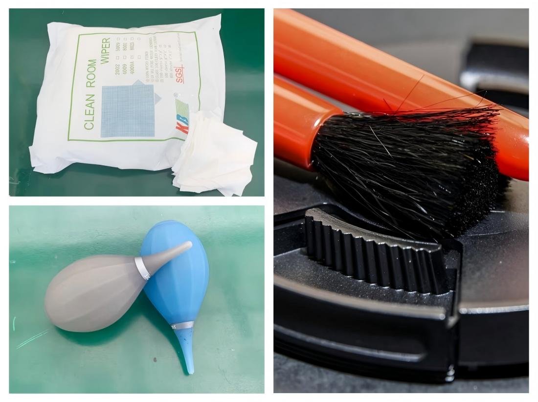 Use professional cleaning tools such as an air blower, soft brush, lens cloth, or lens tissue. These tools can effectively remove dust while preventing scratches on the lens.